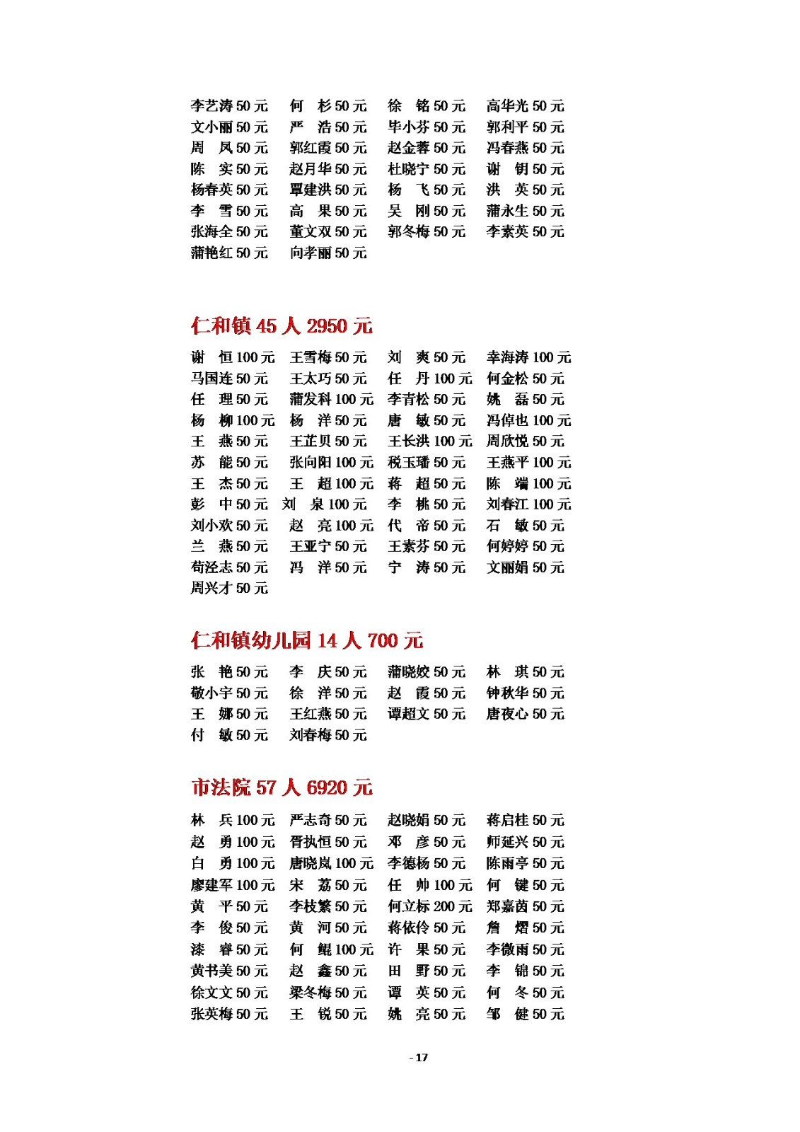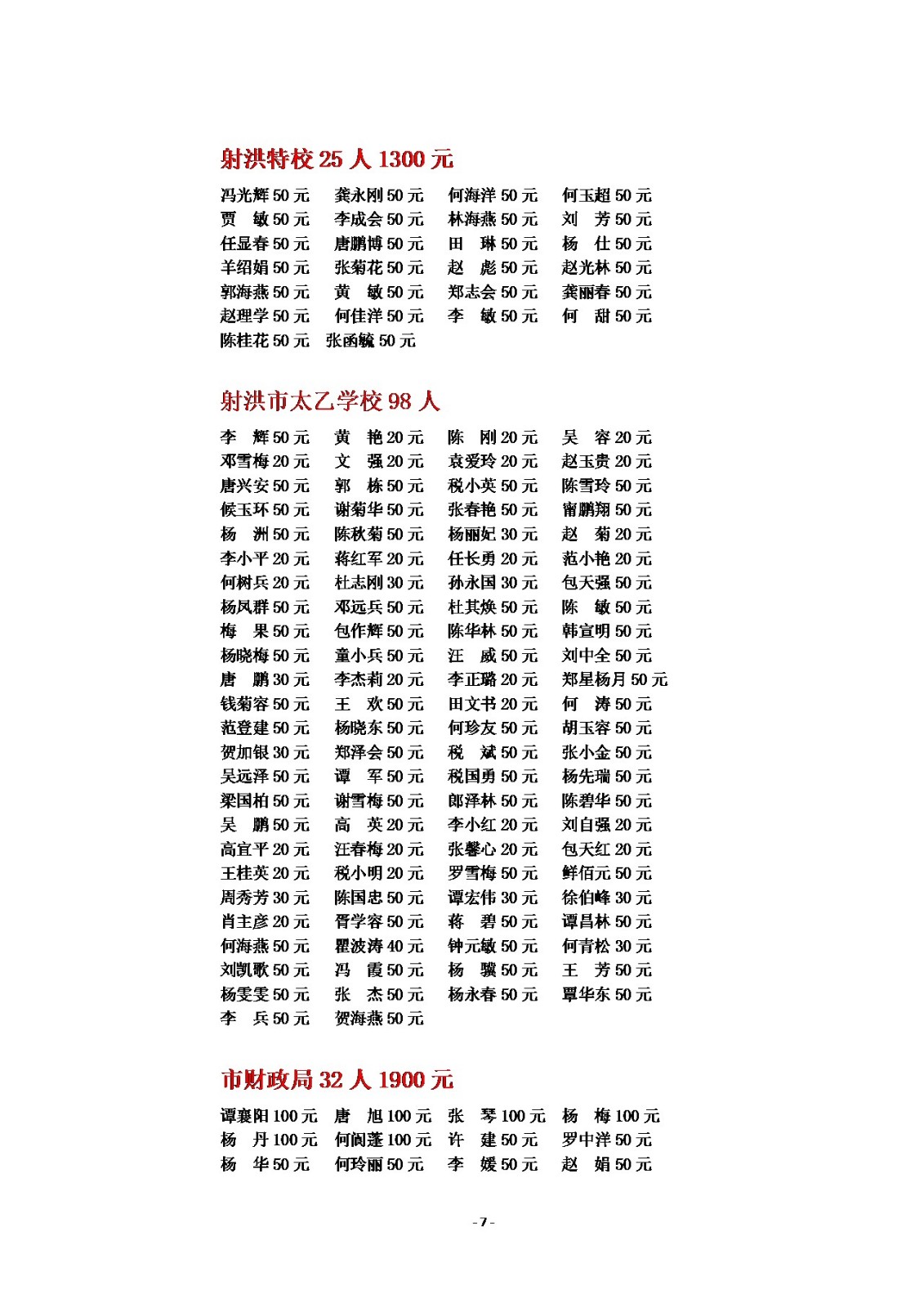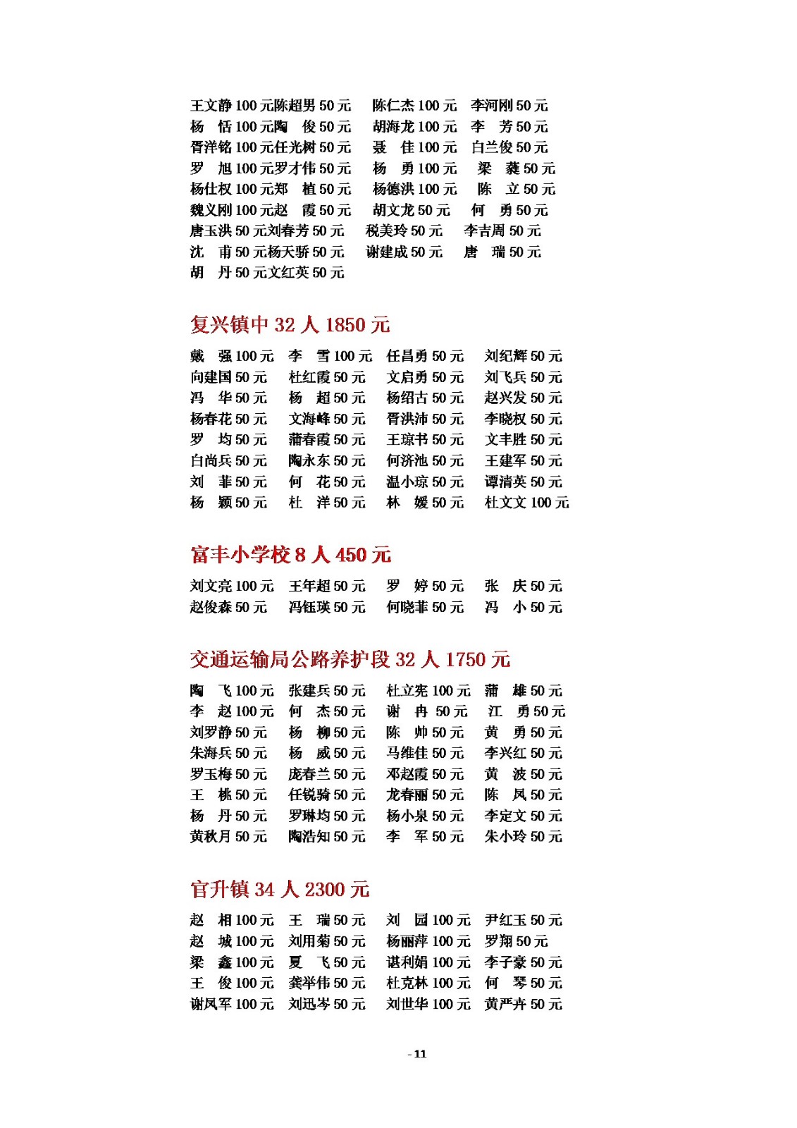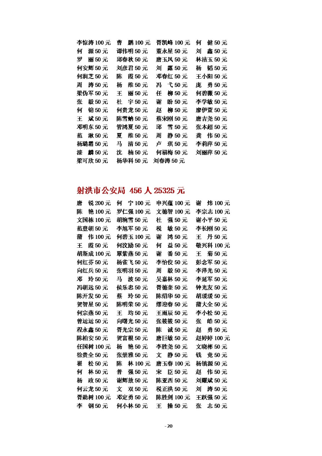 2025年慈善一日捐公示(一)