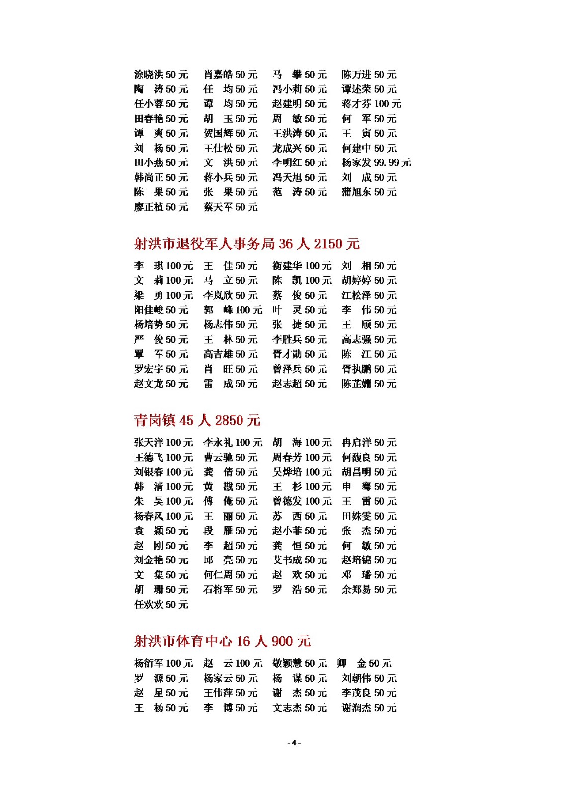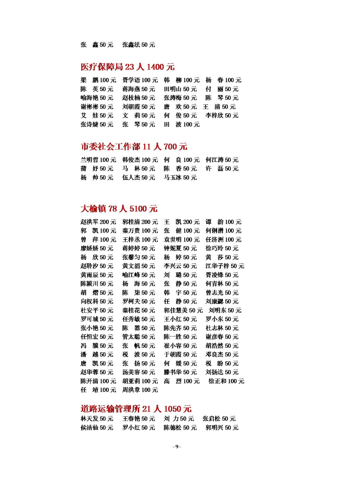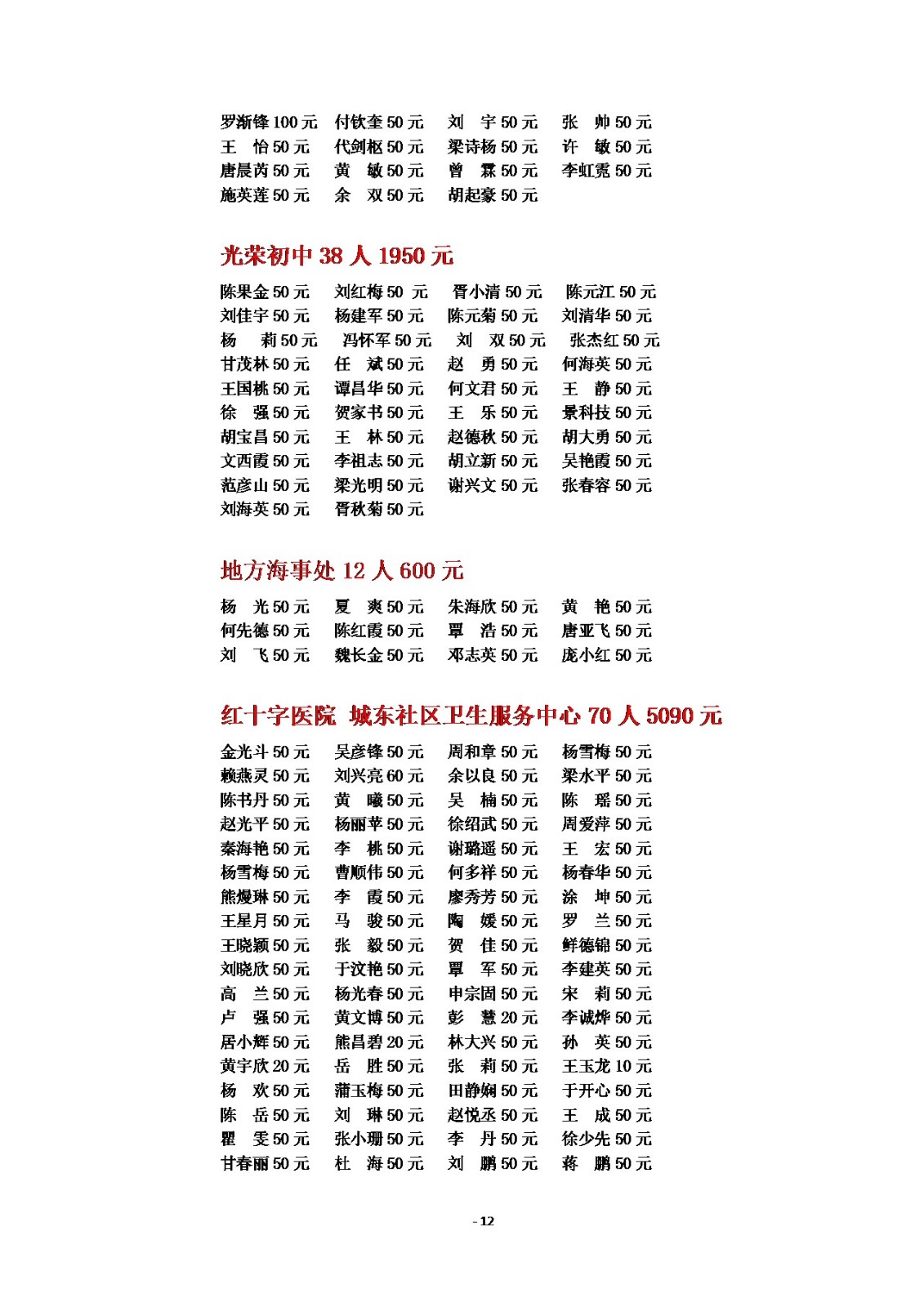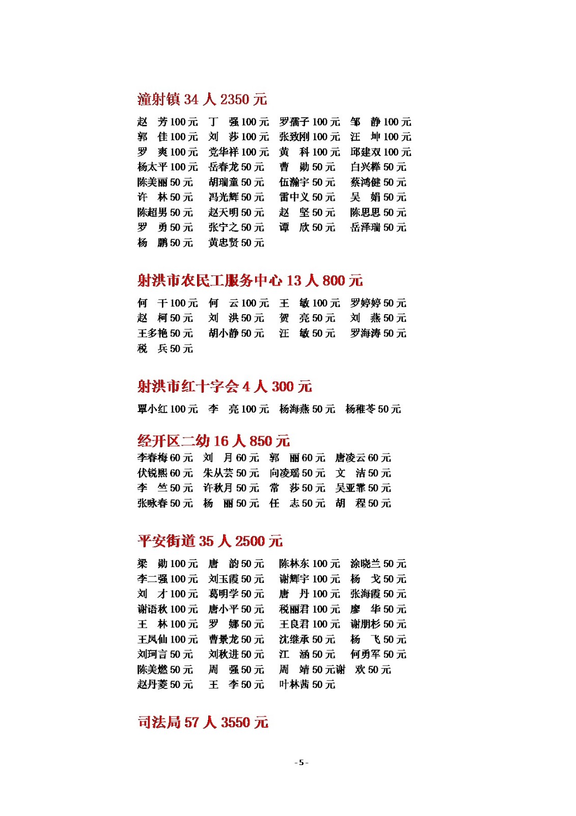 2025年慈善一日捐公示(一)