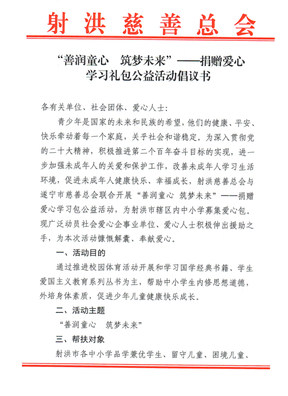 善润童心 梦未来”--捐赠爱心学习礼包公益活动倡议书