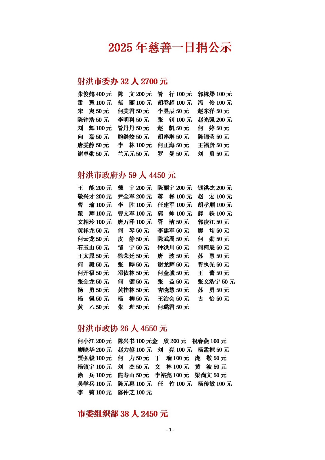 2025年慈善一日捐公示(一)